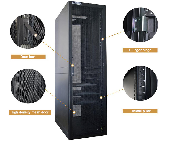 SUNSEA series server cabinets are new generation, high quality cabinet that is designed to meet the modern data center application requirements, with high density, high strength, high ventilation rate features, to meet various application scenarios requirements .
